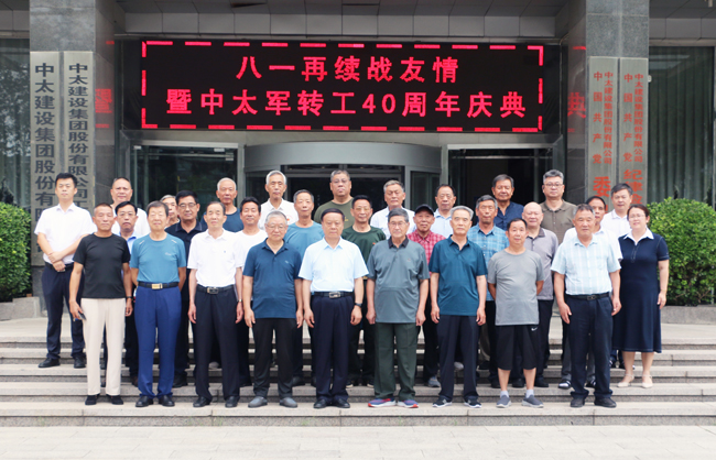 今年8月1日,是中國人民解放軍建軍98周年紀(jì)念日,在這個(gè)特殊的日子里,我們又迎來了原中國人民解放軍基建工程兵三十六支隊(duì)第352團(tuán)集體轉(zhuǎn)業(yè)40周年慶典。歡聚在我們親手建造的中太大廈,隆重慶祝中太建設(shè)集團(tuán)軍轉(zhuǎn)工40周年。會(huì)上,集團(tuán)黨委領(lǐng)導(dǎo)向?yàn)橹刑ㄔO(shè)集團(tuán)的發(fā)展做出卓越貢獻(xiàn)的老領(lǐng)導(dǎo)、老戰(zhàn)友、老同志和集團(tuán)公司全體員工致以誠摯的問候和崇高的敬意!