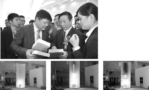 上圖:上海雅達(dá)特種涂料有限公司董事長(zhǎng)顧衛(wèi)星(前左)在京向住建部領(lǐng)導(dǎo)和專(zhuān)家介紹創(chuàng)新產(chǎn)品聚合聚苯板的性能和特點(diǎn)